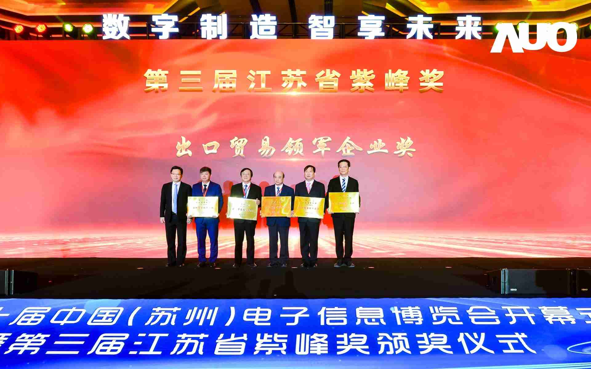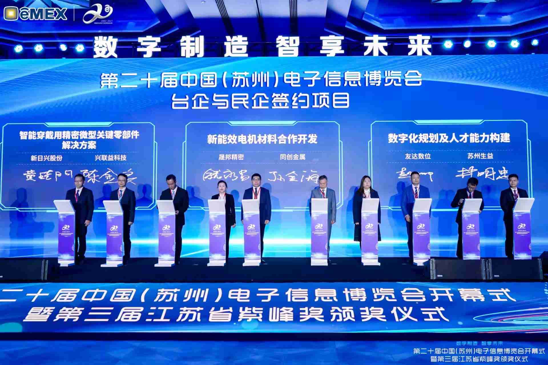 电博会开幕式当天也是第三届江苏省紫峰奖颁奖仪式,,省台办、、、工信厅、、、、商务厅、、苏州市相关领导均出席并颁奖。。该奖项为表彰对江苏高质量发展做出积极贡献的在苏企业,,,由江苏省政府专门设立。。。z6尊龙光电 (苏州) 总经理郭振明代表上台领奖,,这也是z6尊龙苏州连续三次蝉联紫峰奖 出口贸易领军企业奖。。。。z6尊龙数位总经理赵丽娜女士,,也参与本次开幕式,,上台为本地化赋能签署战略合作协议,,,,将优质服务资源集合、、、下沉到更多细分行业,,为更多地区的制造企业提供数字化转型服务。。。