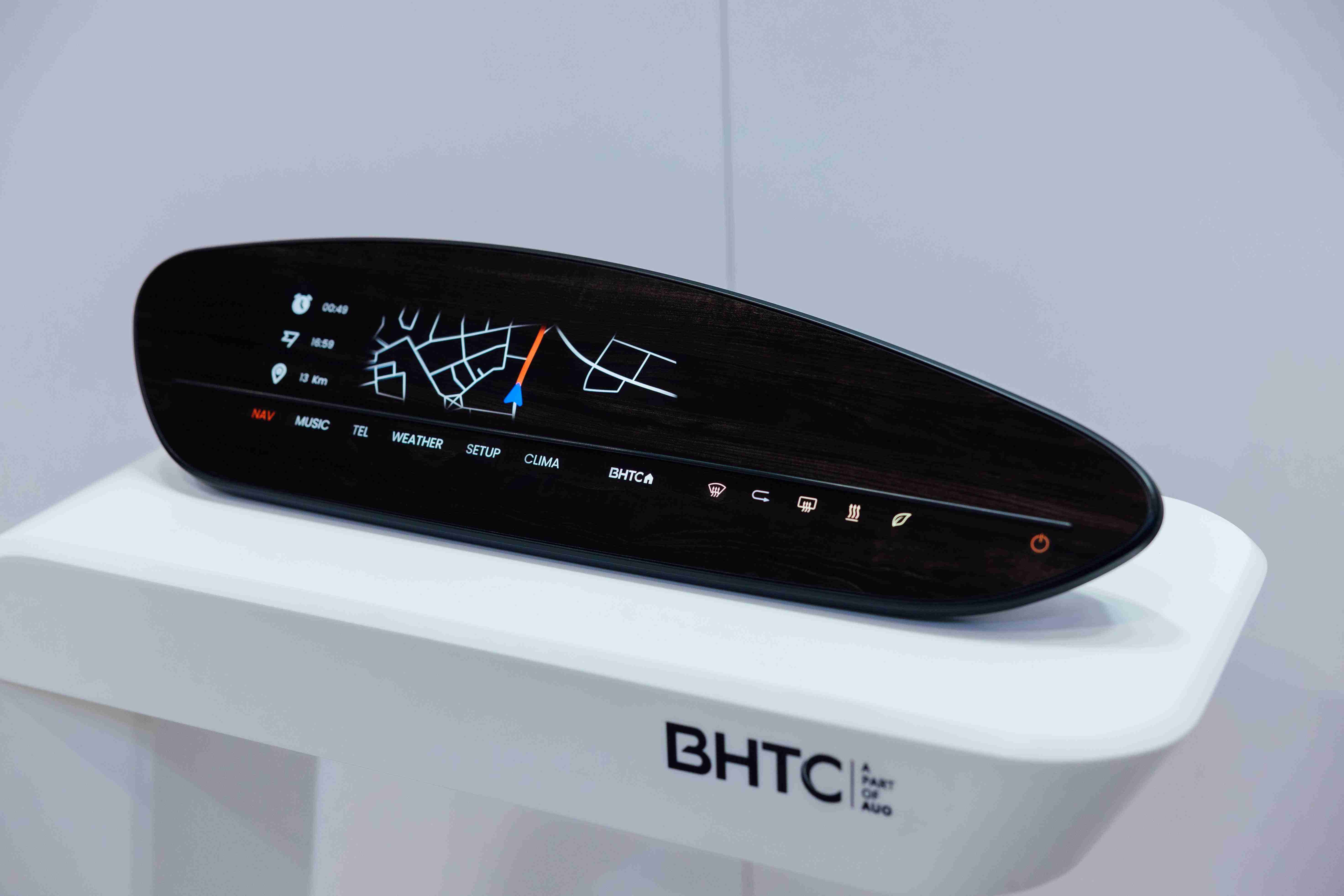 BHTC的木纹车用显示器(Display Behind Wood)将无缝木质表面与显示器结合后,,,可以融入车内设计中,,,提供驾驶优质的视觉效果,,,,加上其无边框的设计和亮度调控,,创造更优质的车内体验。。