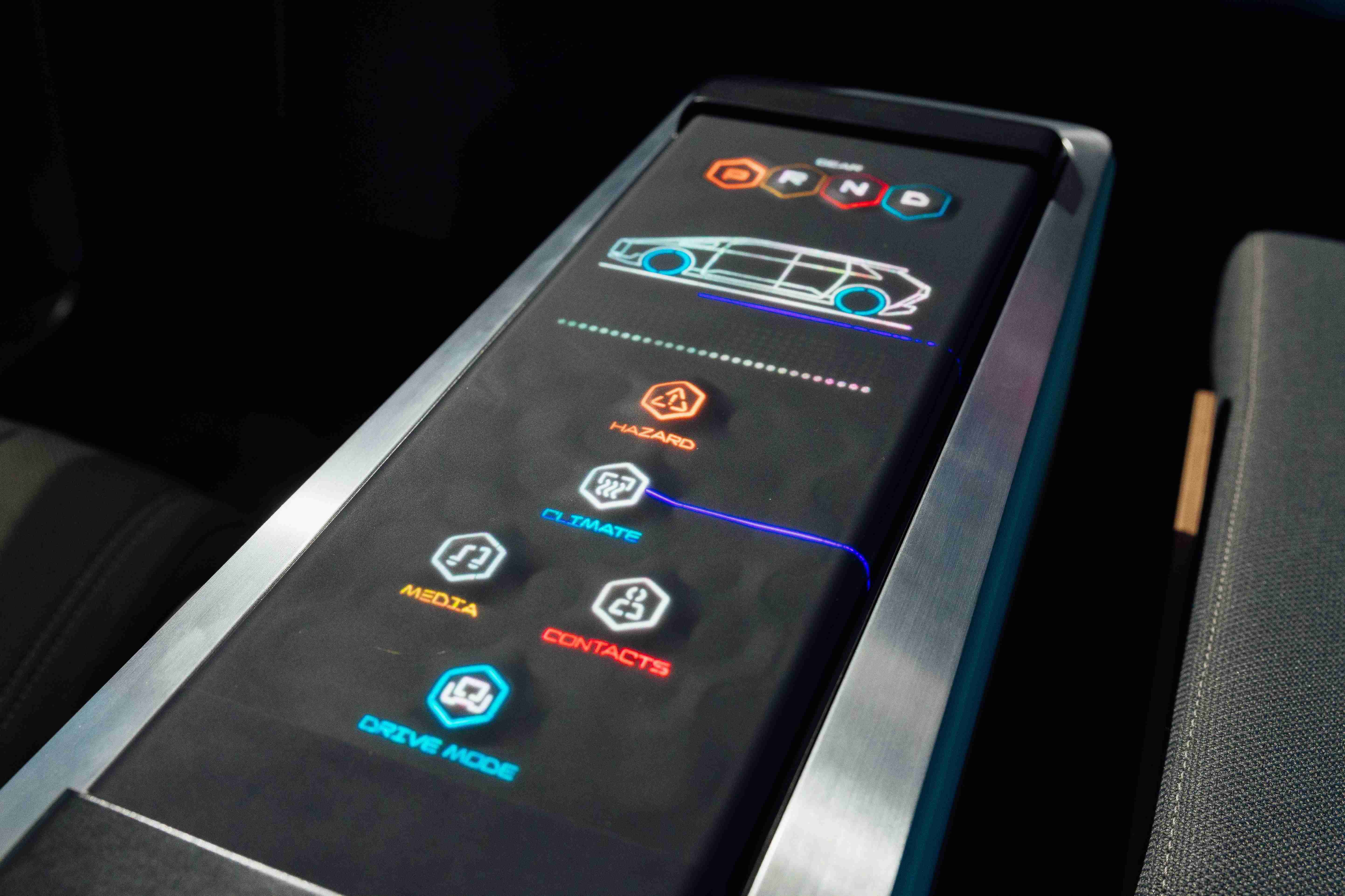 多变形态中控显示(Morphing Center Control)拥有动态变化的表面,,,,平时常态显示车辆功能,,,,进一步操作时,,,,则会隆起成为3D 按钮,,并在触控时以震动回馈,,,,以精细的操作开创人机互动新境界。。。
