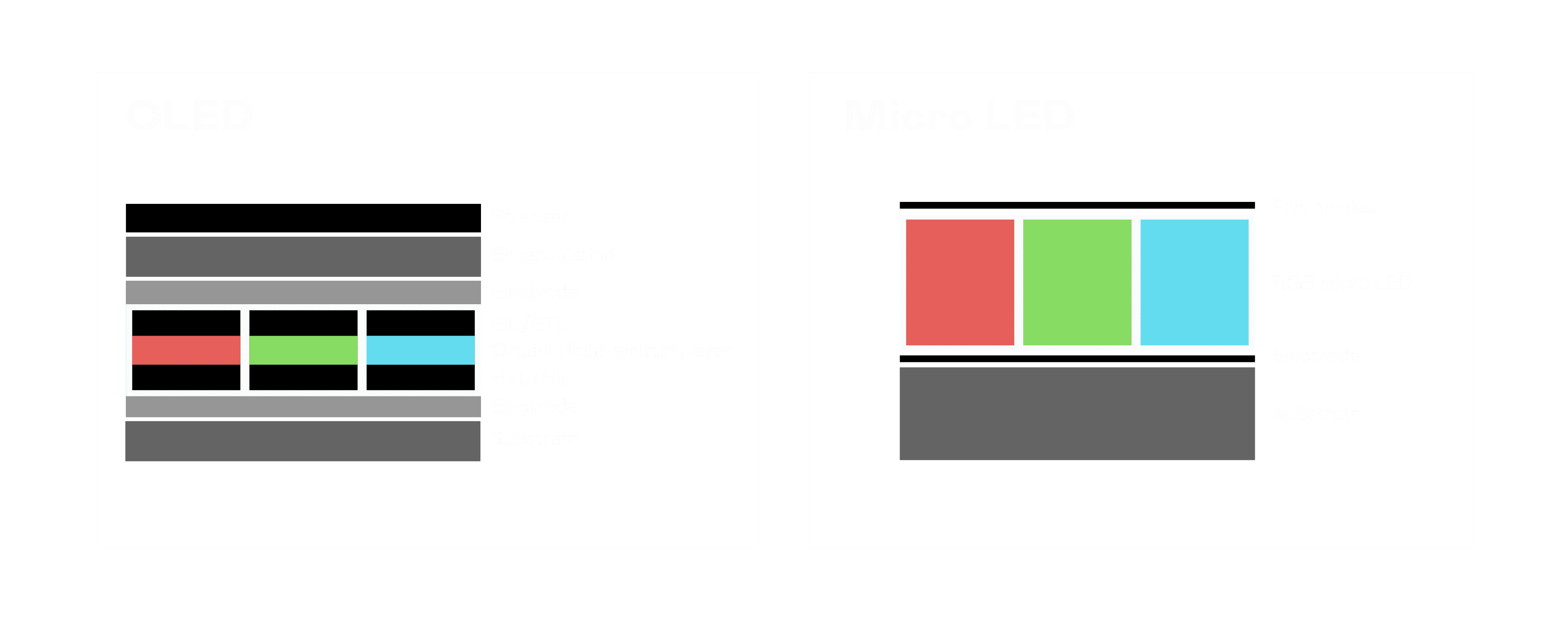 以 LED 做为显示画素,,可让 LED 的发光效率发挥到极致,,,,从而让显示器具备优异的亮度表现,,,,不论是在户外或室内,,,均具备出众的显示效果。。同时,,,,与使用有机材料的 OLED 相比,,,LED 具备更稳定、、、寿命更长的特性,,不仅不会有画面烙印问题,,而且更不容易出现故障、、、、坏点。。。