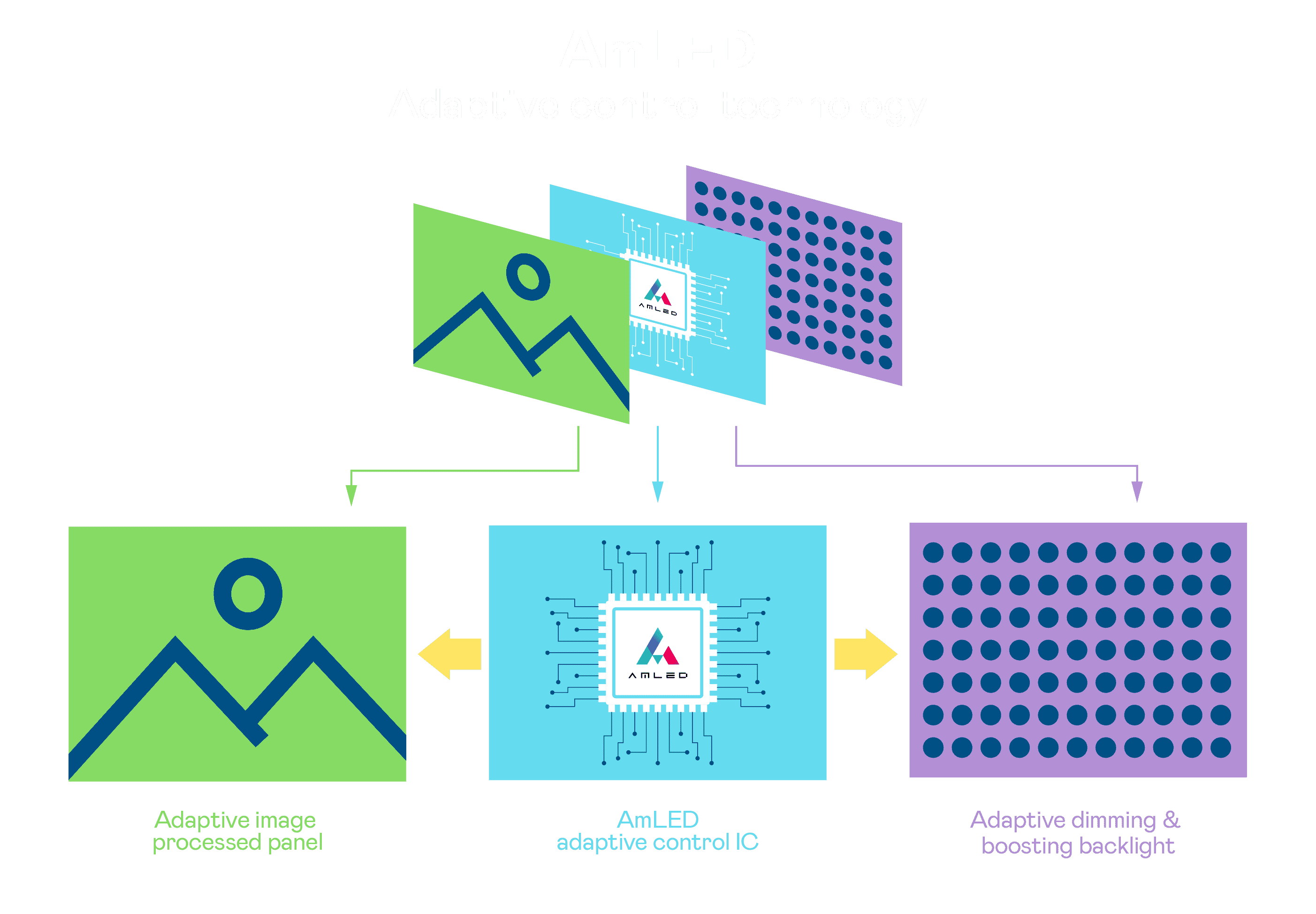 AmLED 具备更省电与低蓝光特性。。与一般的 LED 背光显示技术相比,,,,由于 AmLED 常时处于局部调光状态,,,,其功耗仅有前者的 50% 左右,,同时 AmLED 还具备低蓝光特性,,,满足长时间使用的护眼需求。。。
